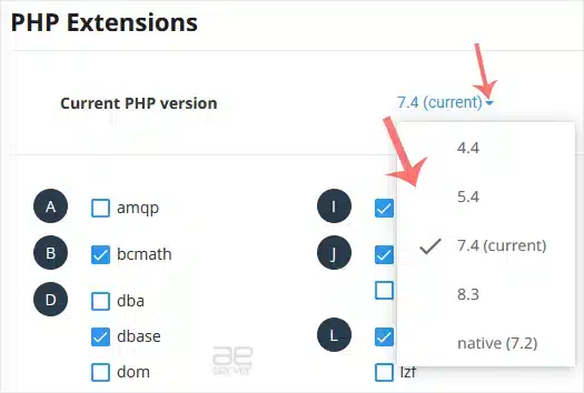 3. To the right side of the Current PHP version, click on the drop-down menu and choose the version you want to use.