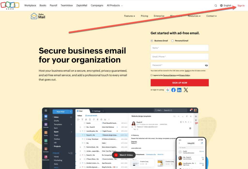 1. Log in to the Zoho Mail Admin Console.
