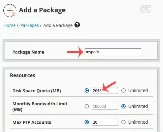 Congratulations: Your new package has been created. Repeat steps 3 to 5 to add more hosting packages.