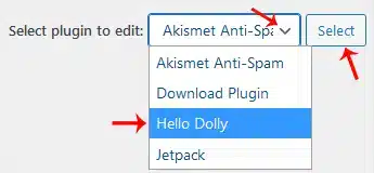3. From the drop-down menu of Select plugin to edit, choose the plugin and click on Select.