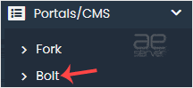 4. On the left side, locate the Portal/CMS category. Click on it and then on the Bolt link that appears.