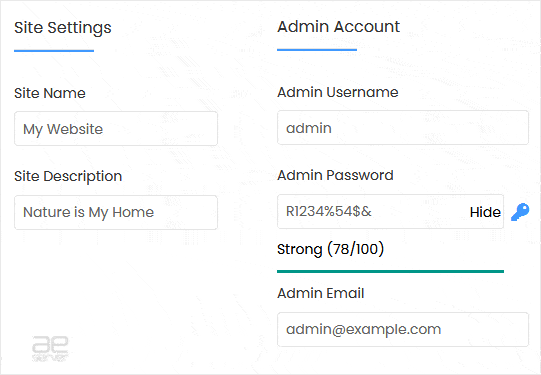 - Admin Username: Your new Chyrp username (for security reasons, do not use the administrator or the admin username).
