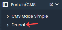 4. On the left side, locate the Portal/CMS category. Click on it and then on the Drupal link that appears.