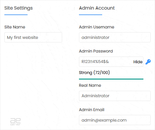 - Admin Email: Your e-mail address.