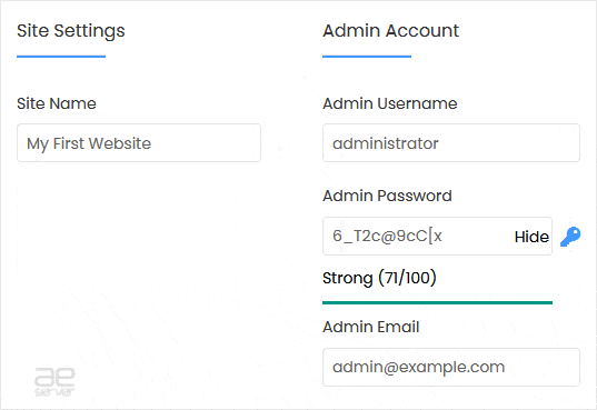 - Admin Username: Your new MODX username (for security reasons, do not use the administrator or the admin username).