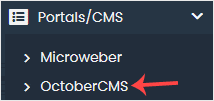 4. On the left side, locate the Portal/CMS category. Click on it and then on the OctoberCMS link that appears.