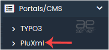 4. On the left side, locate the Portal/CMS category. Click on it and then on the PluXml link that appears.