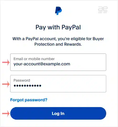 4. PayPal asks you for login details. Enter your PayPal credentials and click Log in.