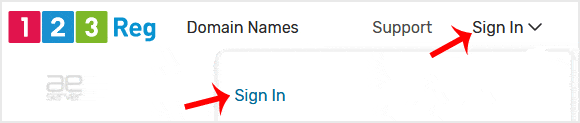 1. Open the 123 Reg website and click on Sign In. Then, click on “Sign-in” in the pop-up window.