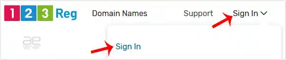 1. Open the 123 Reg website and click on Sign In. Then, click on “Sign-in” in the pop-up window.