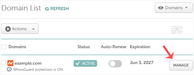 3. Under Domain List, locate your domain and click Manage next to it.