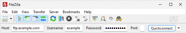 2. Enter your FTP host, username, and password. You can use your cPanel username and password as your FTP user and password. Then click on Quick Connect.
