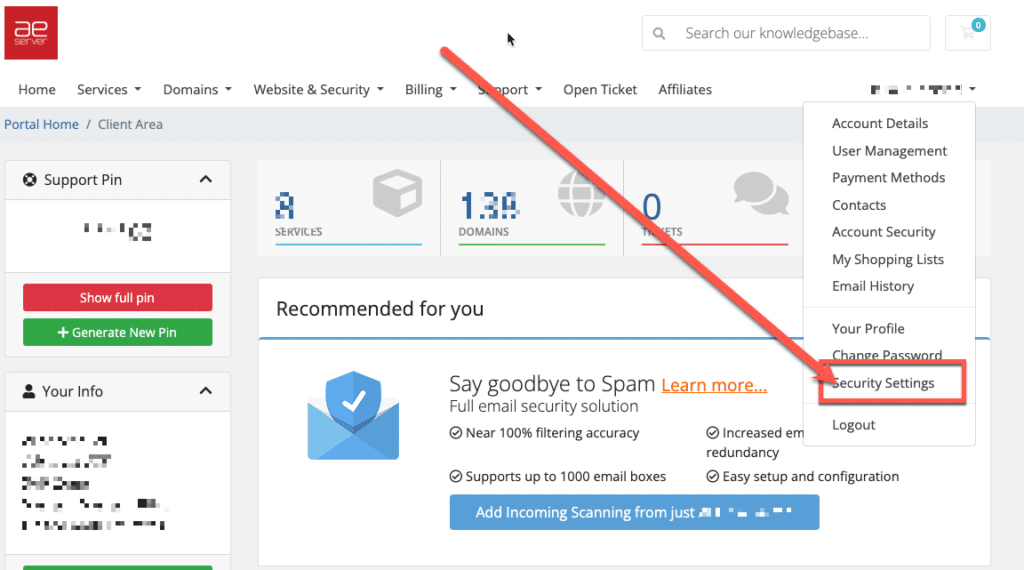 Log in to your client area